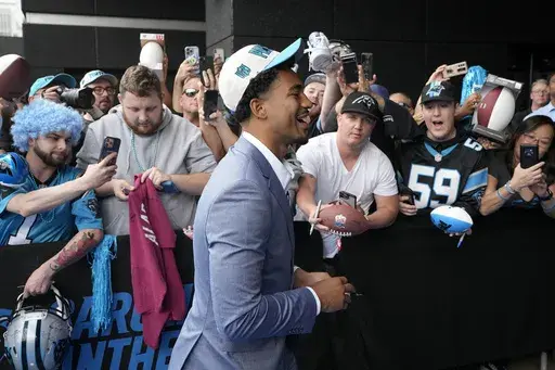 The team welcomed Young and his family to Charlotte on Friday with a pep rally outside of Bank of America Stadium's front gate. Young walked through a line shaking hands with fans as hip-hop music blared, and he banged the team's “Keep Pounding” drum at the end of the procession, signaling the start of a new era in Carolina.