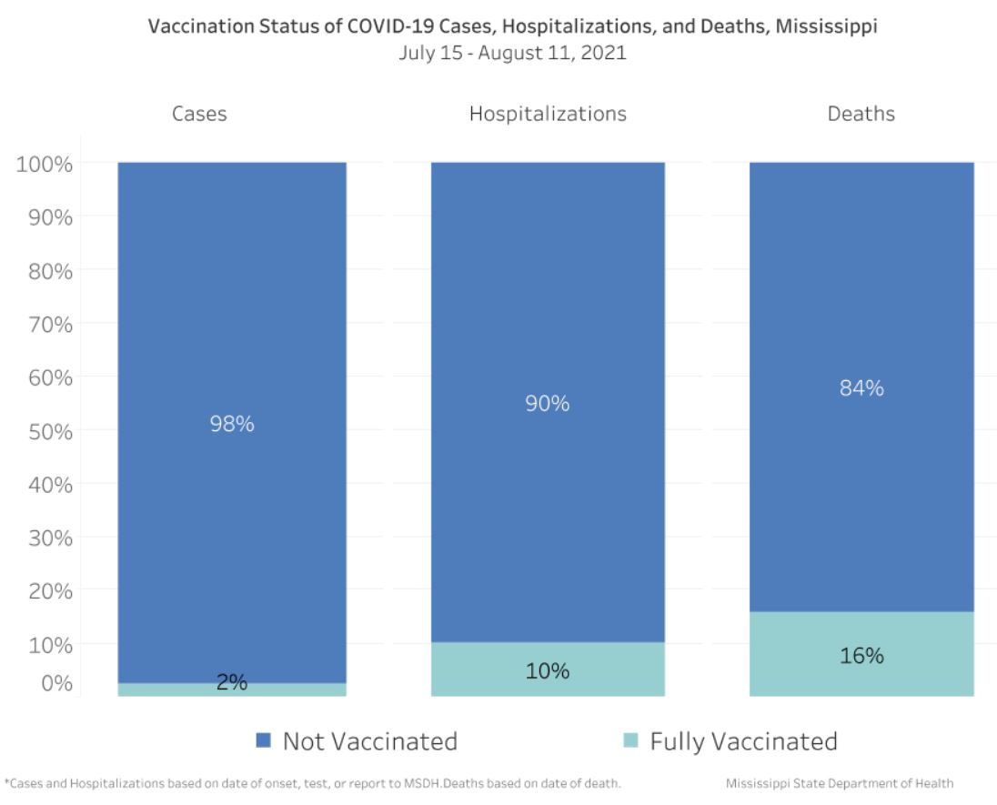 The numbers posted by the Department of Health show 4,412 new cases as of August 11, with 20 new deaths related to COVID-19. There have been 376,124 cases in Mississippi since the pandemic began and 7,730 deaths (2.06 percent of those who developed COVID-19 died).