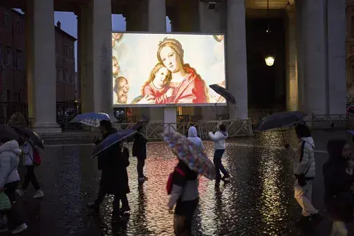 The Vatican said the 88-year-old Francis again followed its spiritual retreat remotely, and resumed physical and respiratory therapy after a quiet night. He continues to receive high flows of oxygen through nasal tubes during the day, and a non-invasive mechanical mask to aid his rest at night.