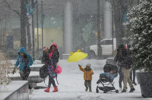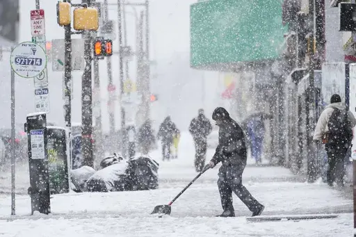 HARTFORD, Conn. (AP) — A quick-moving winter storm battered cities in the Northeast with snowfall, sending huge waves crashing into the New England coastline and forcing New York City schools into glitch-filled remote learning reminiscent of the early days of the pandemic.
