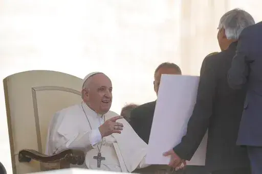 VATICAN CITY (AP) — Retired Associated Press photographer Nick Ut met Wednesday with Pope Francis and gave him a copy of his Pulitzer Prize-winning photograph of a young Vietnamese girl running naked down the road after a napalm attack.