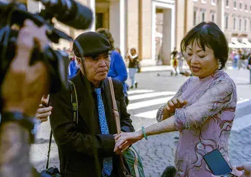 Ut and Kim Phuc Phan Thi, whose terror the AP photographer captured on June 8, 1972 during the Vietnam War, greeted Francis at the end of his general audience Wednesday in St. Peter’s Square, ahead of the 50th anniversary of the iconic image.