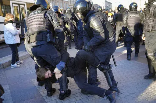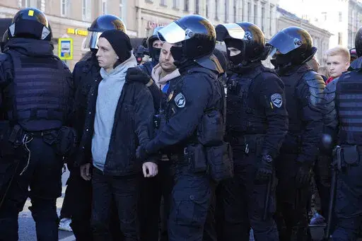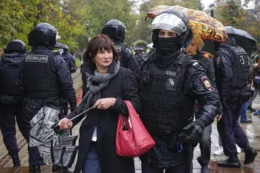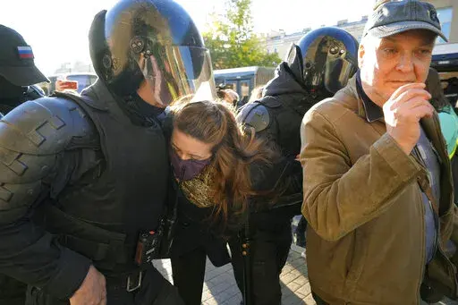 MOSCOW (AP) — Russian police moved quickly Saturday to disperse peaceful protests against President Vladimir Putin's military mobilization order, arresting hundreds, including some children, in scores of cities across the vast country.