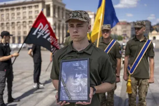At the farewell ceremony, Ukrainian soldiers carried Fouché's coffin through Kyiv’s landmark Independence Square, the site of mass protests in 2014 that forced out a pro-Russian president, towards a memorial for the country's fallen defenders. Fouché's comrades held back tears as they lined up to say goodbye. Mourners read prayers as they held up Ukrainian flags and military banners.