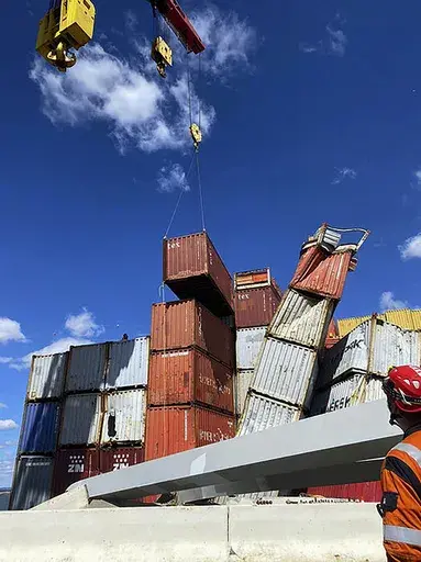BALTIMORE (AP) — Salvage crews on Sunday began removing containers from the deck of the cargo ship that crashed into and collapsed the Francis Scott Key Bridge in Baltimore, an important step toward the full reopening of one of the nation’s main shipping lanes.