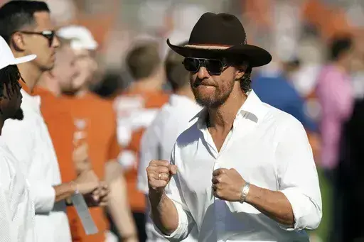 On the field before the game, Sankey shook hands with actor and Texas superfan Matthew McConaughey.
