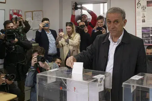 BELGRADE, Serbia (AP) — Long lines formed in front of polling stations in Serbia on Sunday as voters cast ballots in a triple election that was projected to keep in power a populist government which has refused to impose sanctions on Russia over the war in Ukraine.