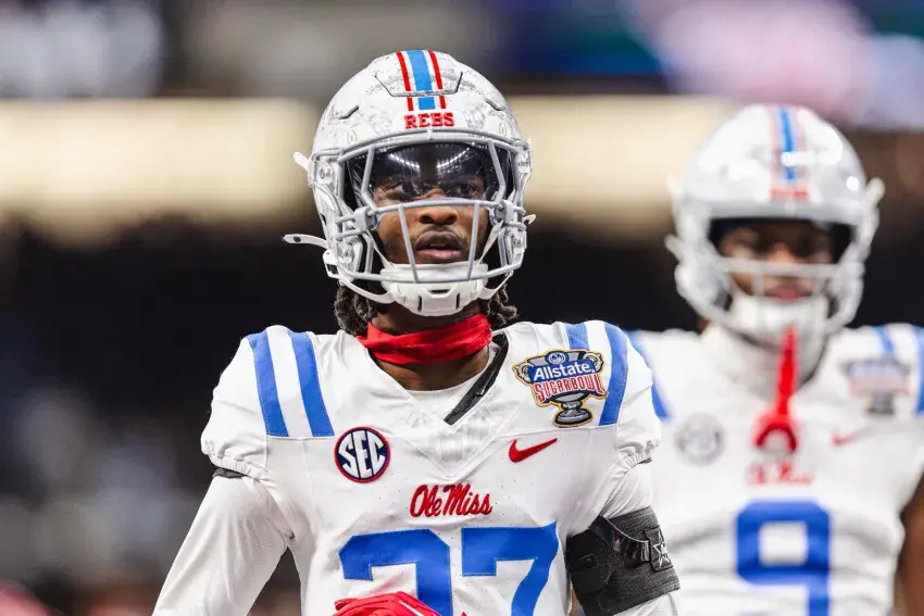 University of Mississippi cornerback Patrick Broomfield (27), a 2024 Clarksdale High School graduate, is two games away from a BCS National Championship. Broomfield and the Rebels defeated Georgia in the Sugar Bowl, 39-34, on New Year’s Day. In bottom photo, Broomfield holds the Sugar Bowl Classic trophy. The Rebels play Miami in the semifinals at 6:30 p.m. tonight at State Farm Stadium in Glendale, Ariz. A watch party for the community will be at the Oakhurst Baptist Church Christian Activity Center beginning at 6 p.m. tonight.