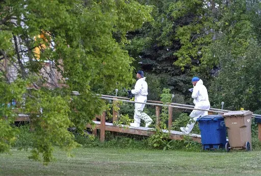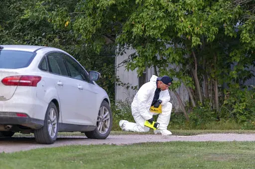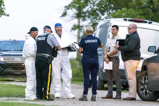 Blackmore said police began receiving reports before 6 a.m. of stabbings on the First Nation community. More reports of attacks quickly followed and by midday police issued a warning that a vehicle reportedly carrying the two suspects had been spotted in Regina, about 335 kilometers (208 miles) south of the communities where the stabbings occurred.