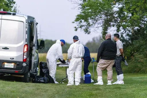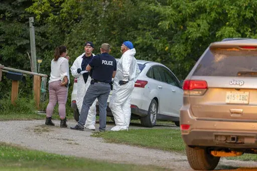 REGINA, Saskatchewan (AP) — A series of stabbings at an Indigenous community and at another town nearby in Saskatchewan left 10 people dead and 15 wounded, Canadian police said Sunday as they searched across the expansive province for two suspects.