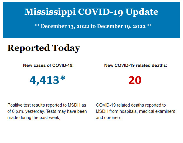 *New COVID-19 positive test results reported to MSDH for December 13 - December 19.