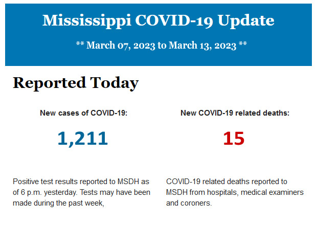 Listed below is the recent COVID-19 update for the state of Mississippi.