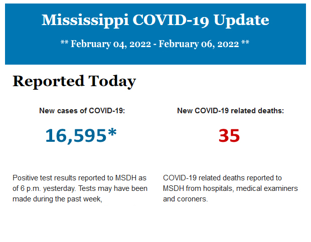 Listed below is the daily COVID-19 update for the state of Mississippi.