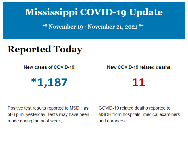 Listed below is the daily COVID-19 update for the state of Mississippi.