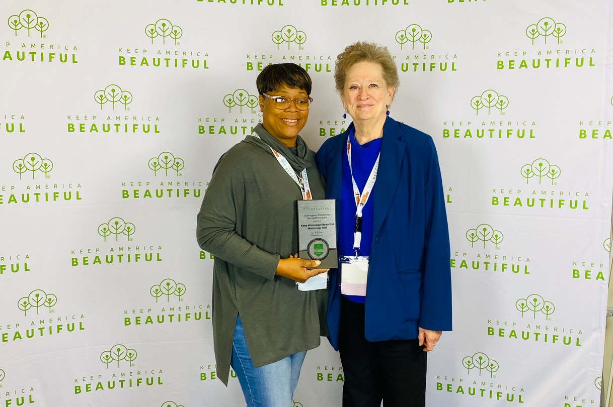The Mississippi Department of Transportation (MDOT) and Keep Mississippi Beautiful recently received a 2022 State Agency Partnership Award at the Keep America Beautiful National Conference held Feb. 20-23, 2023, in Washington, D.C. The Keep America Beautiful State Agency Partnership Award honors state Departments of Transportation, Environmental Quality and/or other state agencies for their support of Keep America Beautiful State Affiliates.
