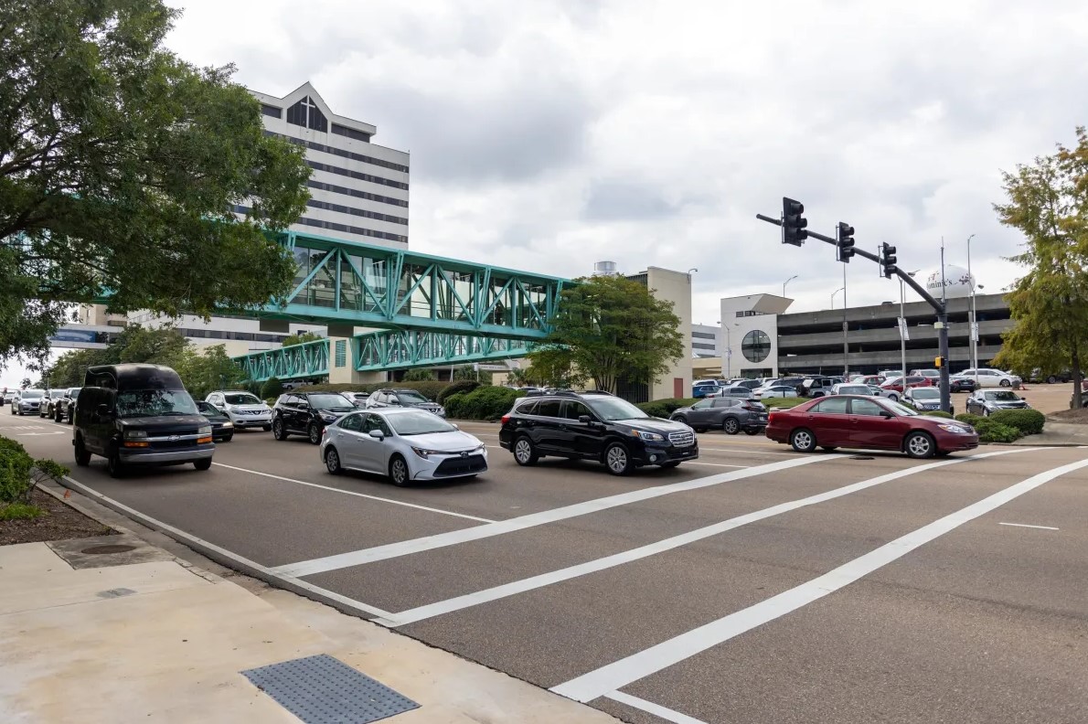 Motorists stop at a traffic light at the intersection of North Curran and Lakeland Drives in Jackson, Miss., Friday, August 19, 2022. Credit: Eric Shelton/Mississippi Today