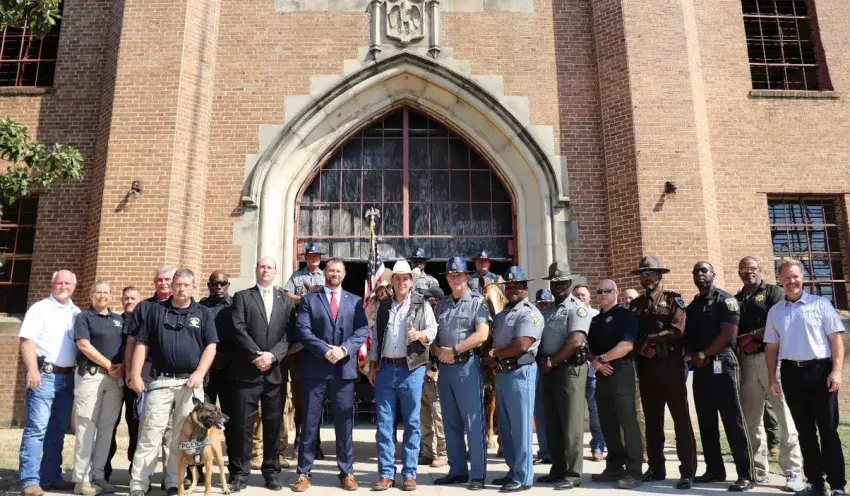 Ag Commissioner Andy Gipson, along with state and local law enforcement officials, addressed security staff and safety measures for the upcoming 2022 Mississippi State Fair. Pictured are officials representing the Mississippi State Fairgrounds, Mississippi Highway Patrol, Mississippi State Capitol Police, Department of Homeland Security, State Fire Marshal’s Office, Mississippi Department of Wildlife, Fisheries and Parks, Mississippi Agricultural and Livestock Theft Bureau, Hinds County Sheriff’s Office, and Jackson Police Department.