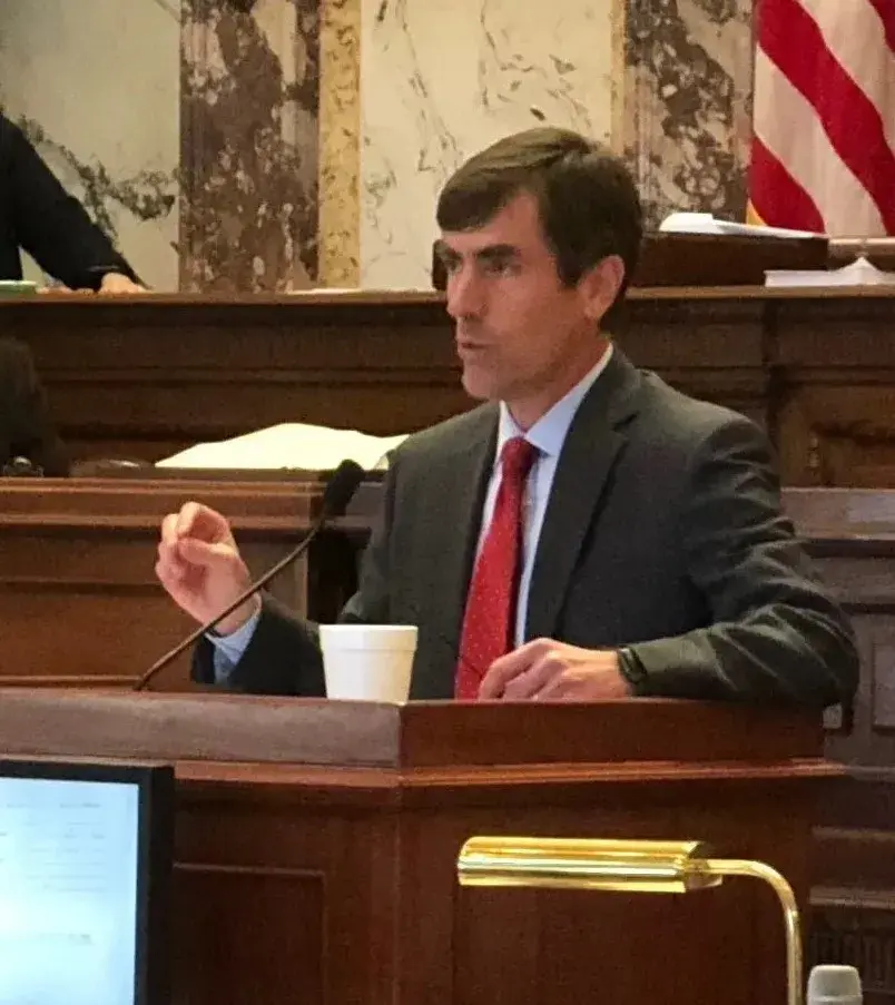 Gov. Tate Reeves shares a laugh with Rep. Nick Bain, R-Corinth, left, and Rep. Gene Newman, R-Pearl, at a bill signing Tuesday, Feb. 28, 2023, where he signed into law legislation banning gender-affirming care for trans minors. To the right, Daily Wire columnist Matt Walsh joins Sen. Joey Fillingane, R-Sumrall, in preparing for a news conference. Credit: Molly Minta/Mississippi Today