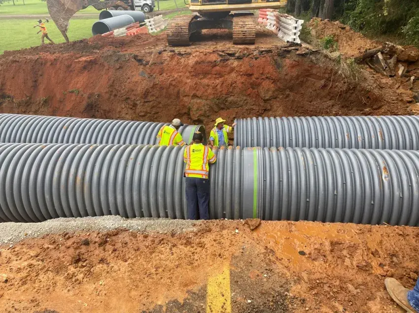 Mississippi Department of Transportation (MDOT) District 5 maintenance forces are making headway on repairs to a roadway failure that occurred on State Route 427 in Neshoba County after Monday’s severe weather.