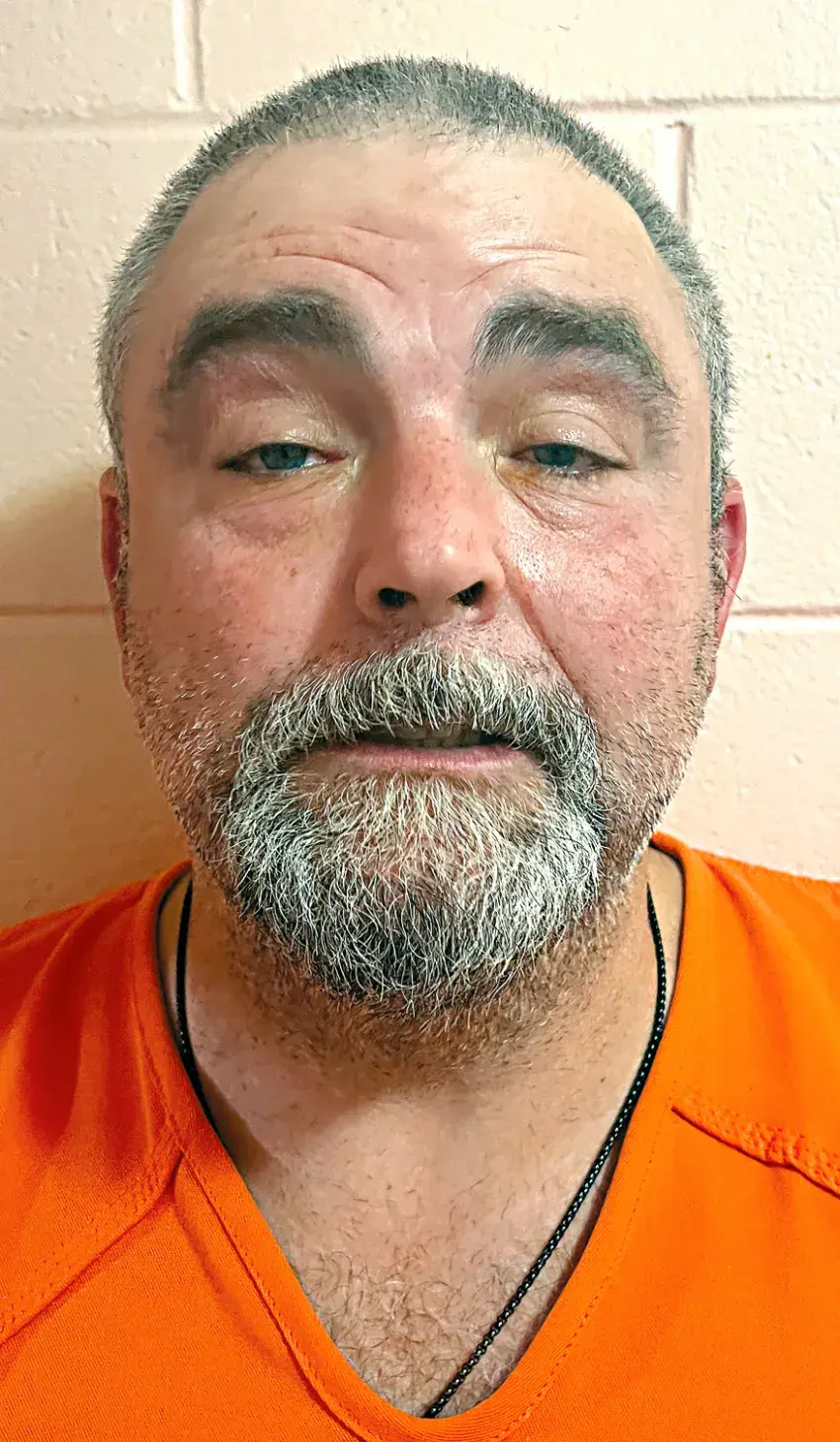 Flanked by Tallahatchie County Deputy Sheriff Jerry Williams II, left, and Panola County Sheriff Shane Phelps, right, fugitive Ewel "Bubba" Scott arrives outside the Tallahatchie County Jail in Charleston on Thursday, Aug. 14, 2025. (Photo by Clay McFerrin, Copyright 2025, Emmerich Newspapers Inc.)