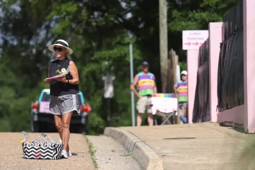 Dr. Cheryl Hamlin poses for a portrait outside of the Jackson Women's Health Organization in Jackson, Miss., Tuesday, June 7, 2022. Dr. Hamlin travels from Massachusetts to Jackson to assist patients seeking abortions. Credit: Eric Shelton/Mississippi Today
