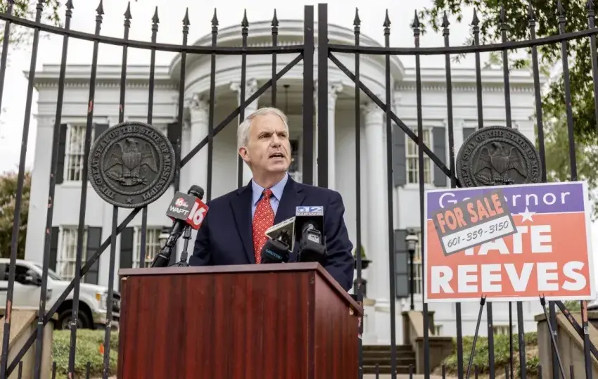 Brandon Presley, the state’s Democratic nominee for governor, stood in front of the gates of the Mississippi Governor’s Mansion last week to lob two major accusations at his Republican opponent, Gov. Tate Reeves, over his connections to the state’s welfare scandal.