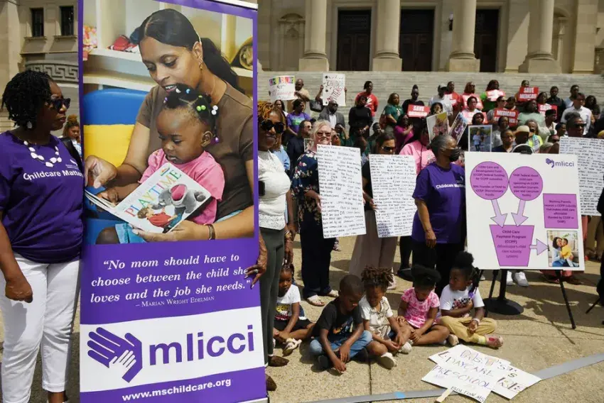 Child care workers and children, parents and legislators stressed the need to protect access to child care during the Child Care Matters: Keep Mississippi Working press conference held at the state Capitol, Thursday, April 24, 2025. Credit: Vickie D. King/Mississippi Today