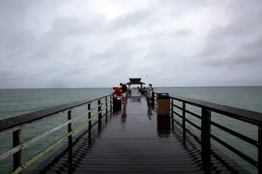 Florida Gov. Ron DeSantis said the forecast was somewhat unusual in that substantial rains were expected in southwestern Florida on Friday and windy but drier conditions on Saturday. “The rain is actually beating the wind” instead of the two coming together, he said.