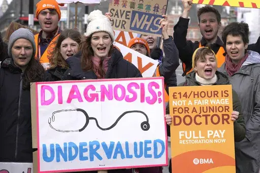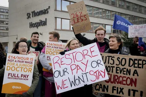 The British Medical Association, the doctors' trade union, says pay for junior doctors has fallen 26% in real terms since 2008, while workload and patient waiting lists are at record highs. The union says burnout and the U.K.'s cost-of-living crisis are driving scores of doctors away from the public health service.
