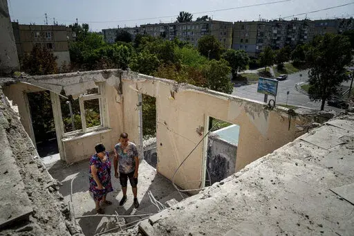 “I feel hate towards Russians,” said 74-year-old Liudmyla Shyshkina, standing on the edge of her destroyed fourth-floor apartment in Nikopol that no longer has walls. She is still injured from the Aug. 10 blast that killed her 81-year-old husband, Anatoliy.