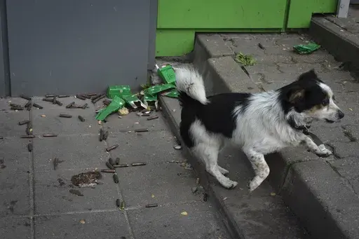 Artillery fire has blown chunks out of a statue of Soviet founder Vladimir Lenin that stands in a central square of the Russian town, which Ukrainian President Volodymyr Zelenskyy said Thursday was fully under his troops' control. The windows of an administrative building are blasted out, and its bright yellow facade is scorched and pockmarked with bullet holes.