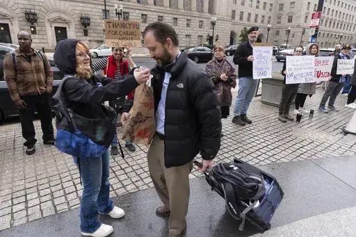WASHINGTON (AP) — U.S. Agency for International Development workers — many in tears — carted away belongings through cheering crowds in a final visit to their now-closed headquarters Thursday as the Trump administration's rapid dismantling of the congressionally authorized agency moved into its final stages.