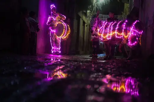 After evening prayers, many boys and girls across Sumatra island parade through the streets. They carry torches and play Islamic songs.