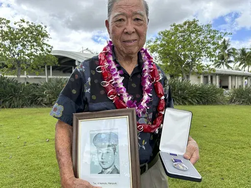 PEARL HARBOR, Hawaii (AP) — The families of five Hawaii men who served in a unit of Japanese-language linguists during World War II received posthumous Purple Heart medals on behalf of their loved ones on Friday, nearly eight decades after the soldiers died in a plane crash in the final days of the conflict.